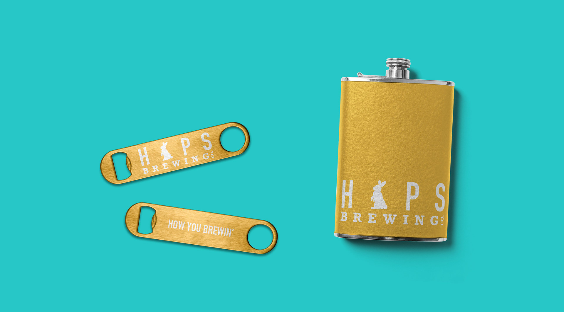 Referencing the hops in beer and utilizing rabbit ears to turn this play on words into a bustling brewery.